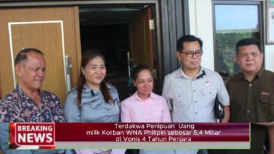 Pengadilan Negeri (PN) Manado menjatuhkan vonis pidana terhadap terdakwa Fredrick Nikijuluw, warga Sulawesi Utara, terkait kasus penipuan senilai Rp5,4 miliar yang menimpa Warga Negara Asing (WNA) asal Filipina, Gracelda Yap Madera.