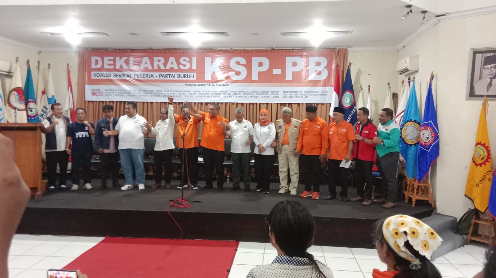 Oleh karena itu, pada hari Selasa (20/5/2025), gedung Joeang 45, telah di Deklarasikan Koalisi serikat pekerja, Koalisi Organisasi Kerakyatan, dan Partai Buruh yang berhimpun dari satu Koalisi Besar yang bernama Koalisi Serikat Pekerja-Partai Buruh yang disingkat KSP-PB. Koalisi ini terdiri dari konfederasi Serikat pekerja terbesar, mayoritas federasi serikat pekerja ditingkat nasional, organisasi petani, organisasi guru dan tenaga honorer, organisasi nelayan, organisasi tenaga medis, organisasi media, dan konten kreator, organisasi transportasi, organisasi pekerja rumah tangga, organisasi buruh migran, organisasi miskin kota dan pekerja informal, organisasi pelaut, dan organisasi kerakyatan lainnya.