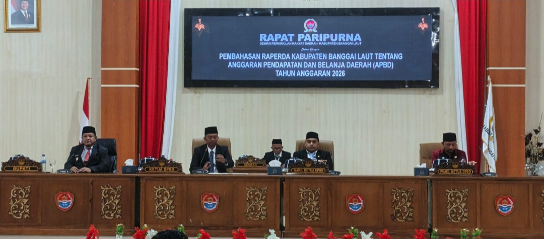 Banggai Laut, TEVRI-TV — Senin, (17/11/2025). Dewan Perwakilan Rakyat Daerah (DPRD) Kabupaten Banggai Laut menggelar Rapat Paripurna dalam rangka pembahasan Rancangan Peraturan Daerah (Raperda) tentang Anggaran Pendapatan dan Belanja Daerah (APBD) Tahun Anggaran 2026, Senin (17/11/2025). Rapat berlangsung lancar hingga selesai.