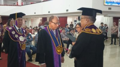 “Kami sangat bersyukur dan bangga. Gelar profesor adalah wujud dari kerja keras, ketekunan, serta pengabdian panjang. Khusus kepada Prof. Dr. Isri Ronald Mangangka, kami memberikan apresiasi setinggi-tingginya karena telah membawa nama baik keluarga serta daerah Sulawesi Utara,” ujar perwakilan keluarga, Senin (29/9/2025) di Auditorium Unsrat Manado.