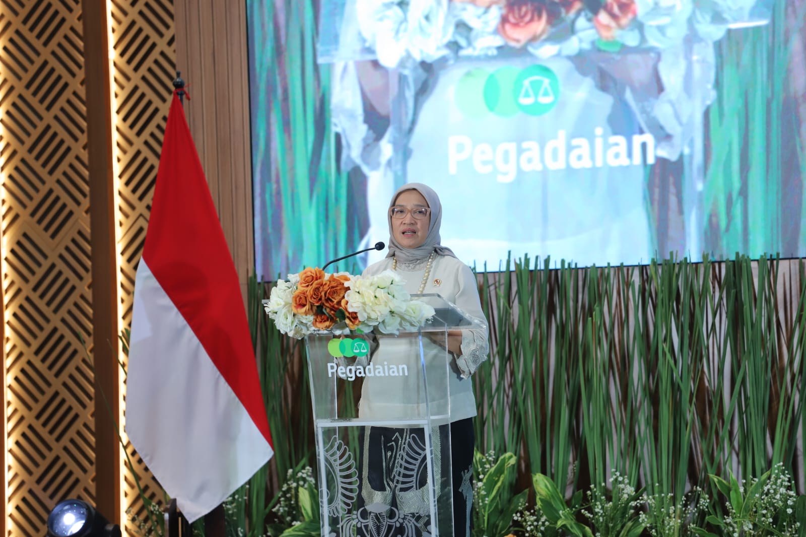 Direktur Pemasaran dan Pengembangan Produk PT Pegadaian Elvi Rofiqotul Hidayah menyampaikan komitmen Pegadaian dalam membangun ekosistem emas dengan melibatkan partisipasi masyarakat. Hal ini diwujudkan melalui berbagai produk berbasis emas seperti program angsuran dan tabungan emas.