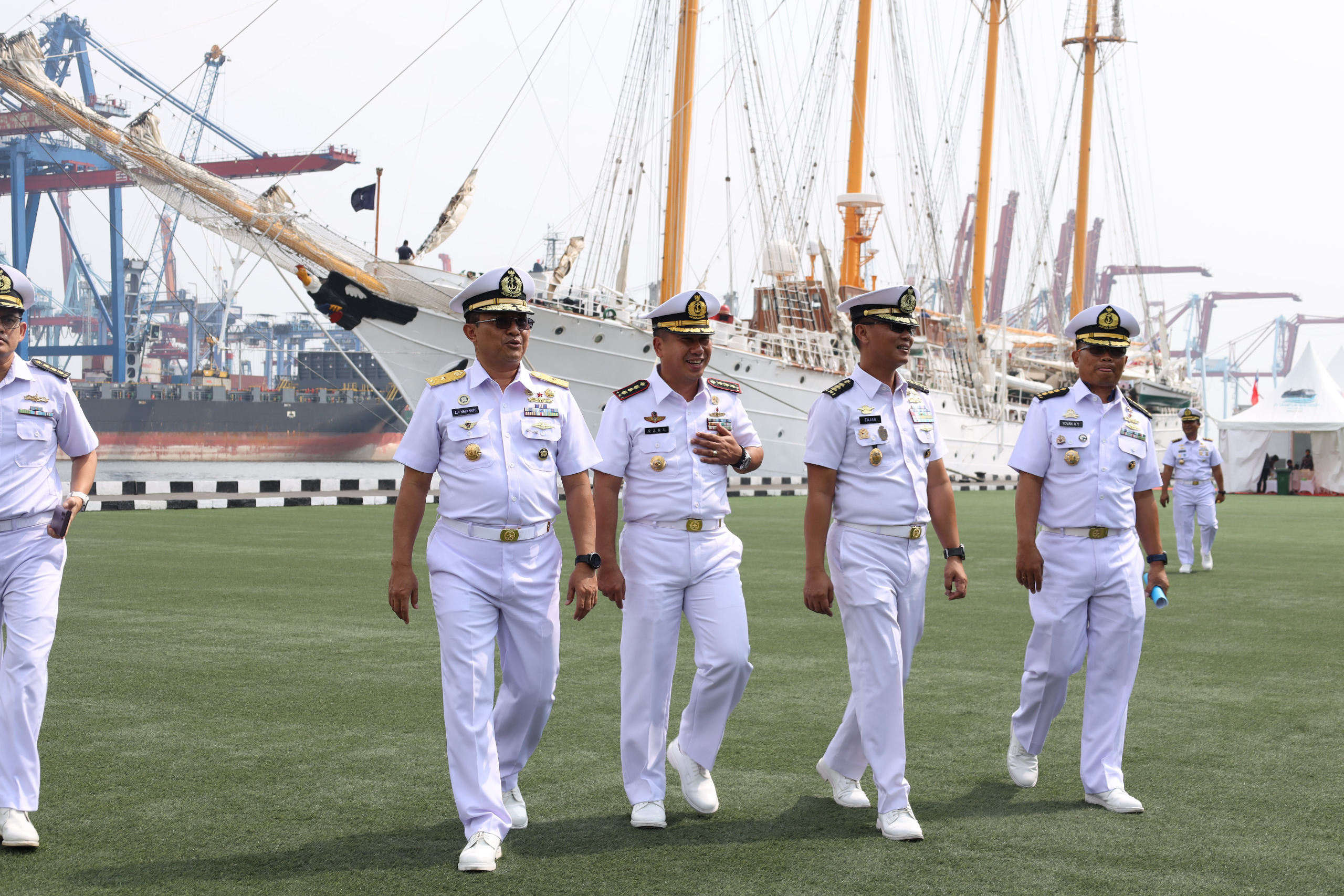 Komandan Lantamal III Laksamana pertama TNI Uki Prasetia, S.T., M.M. yang diwakili oleh Wadanlantamal III, Kolonel Laut (P) Ranu Samiaji, S.T., M.H., menyambut kedatangan kapal latih Angkatan Laut Chile, CNS Esmeralda (BE-43) yang dikomandani oleh Captain Andres Gallegos di Dermaga Kolinlamil, Tanjung Priok, Jakarta Utara, Minggu (13/7).