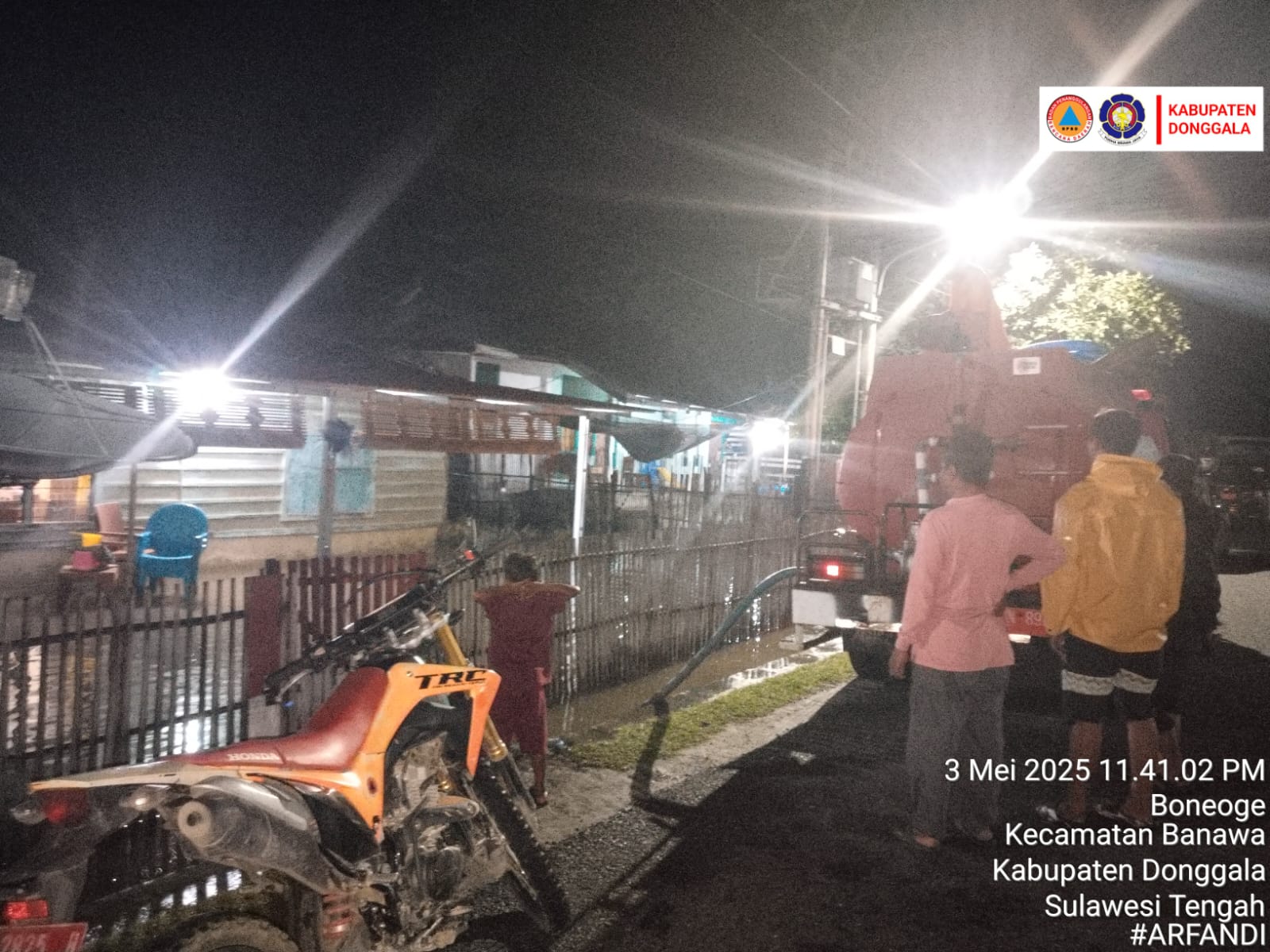 Kejadian banjir dilaporkan terjadi di Kecamatan Banawa, Kabupaten Donggala, Provinsi Sulawesi Tengah pada Jumat, (2/5) pukul 10.02 WITA. Banjir dipicu curah hujan tinggi selama lebih dari dua jam mengakibatkan meningkatnya debit air di Sungai Kelurahan Ganti, hingga banjir merendam pemukiman warga dan membawa material yang menutupi sebagian akses jalan utama Donggala – Pasangkayu.
