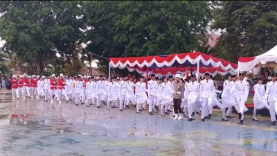 Banggai Laut, TEVRI-TV – Minggu, (17/8/2025). Upacara penurunan bendera dalam rangka peringatan Hari Ulang Tahun (HUT) ke-80 Kemerdekaan Republik Indonesia tetap berlangsung khidmat meski diguyur hujan pada sore hari ini.