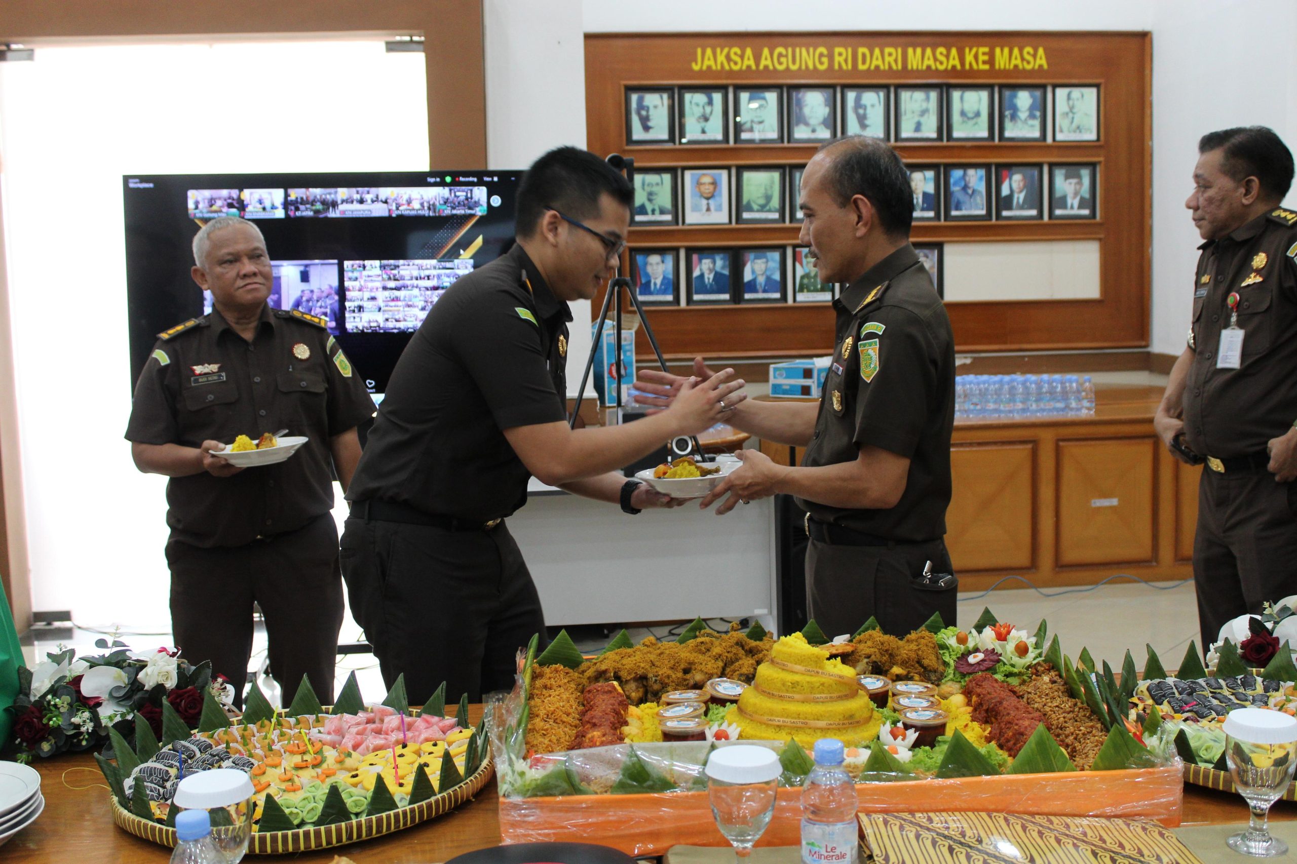 Pemotongan tumpeng dilakukan oleh Plt. Kajari Jakarta Timur yang turut didampingi oleh para Kepala Seksi, yakni: