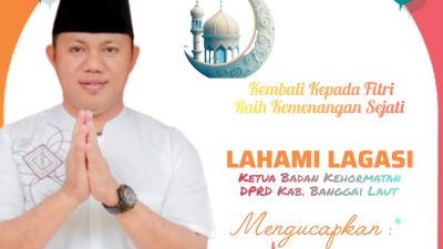 Ketua Badan Kehormatan DPRD Kabupaten Banggai Laut, Lahami Lagasi, Mengucapkan: Selamat Hari Raya ‘IDUL FITRI” 1446 H / 2025 M. Minal Aidin Wal Faidzin, Mohon Maaf Lahir & Batin.
