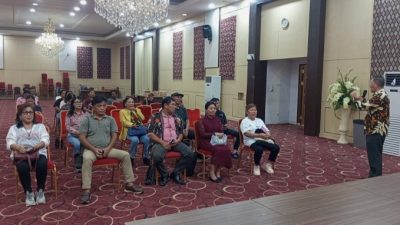 Nara Sumber Dr. Agustinus Walansendow SE,MM,MSi Ketua Sekokah Tinggi Ilmu Pariwisata Manado Dalam sesi pelatihan menjelaskan materi seputar dasar-dasar jurnalistik, teknik penulisan berita 5W+1H, etika profesi wartawan, serta praktik langsung menulis berita.