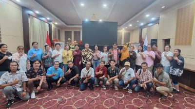 Nara Sumber Dr. Agustinus Walansendow SE,MM,MSi Ketua Sekokah Tinggi Ilmu Pariwisata Manado Dalam sesi pelatihan menjelaskan materi seputar dasar-dasar jurnalistik, teknik penulisan berita 5W+1H, etika profesi wartawan, serta praktik langsung menulis berita.