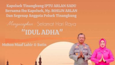 Kapolsek Tinangkung, IPTU ARLAN SADU Bersama Ibu Kapolsek, Ny. ROSLIN ARLAN dan Segenap Anggota Polsek Tinangkung. Mengucapkan, Selamat Hari Raya “IDUL ADHA” 1446H/2025M. Mohon Maaf Lahir dan Batin.